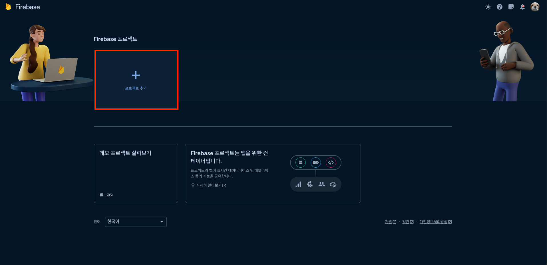 Firebase console에 접속하여 프로젝트 하나를 생성합니다.