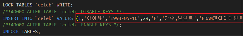 -r 옵션 사용시 mysql클라이언트는 이러한 이스케이프 사용X, 데이터를 원형 그대로 출력