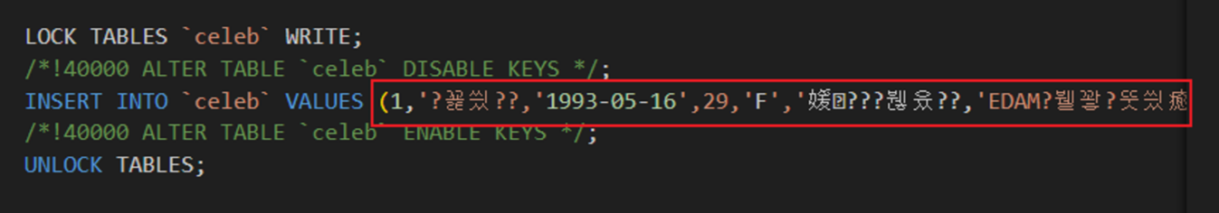 기존에 한글이 깨지는 문제는 mysql클라이언트가 결과를 출력하는 과정에서 발생