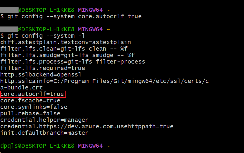 core.autocrlf = false: 파일에 적용된 줄바꿈 문자와 상관없이 작업한 환경의 줄바꿈 문자 적용core.autocrlf = true: 파일에 적용된 줄바꿈 문자를 CRLF에서 LF로 변경core.autocrlf = input: Commit할때만 CRLF를 LF로 변경
