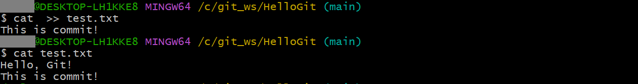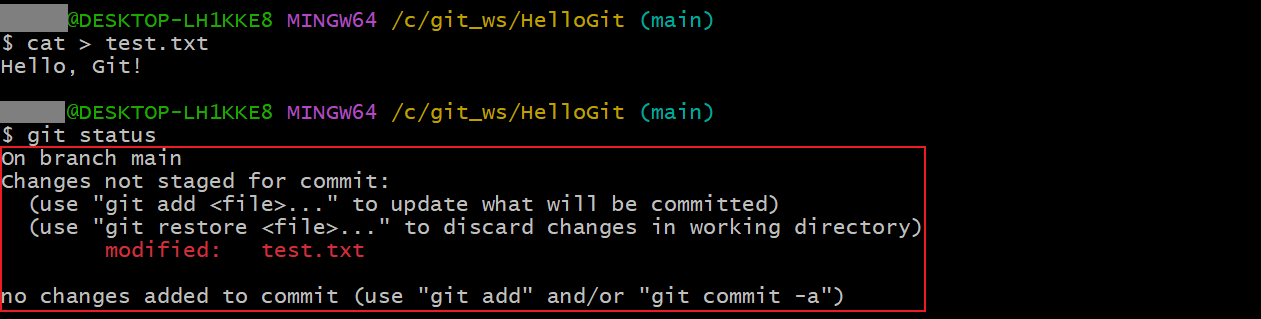 Modified 상태로 전환cat > test.txt