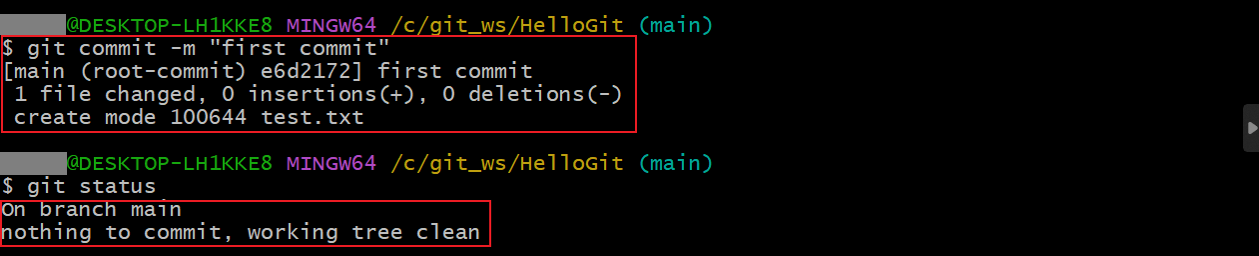 git commit -m "first commit"