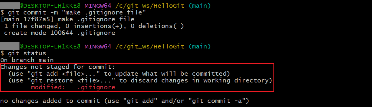 git commit -m "make .gitignore file"
