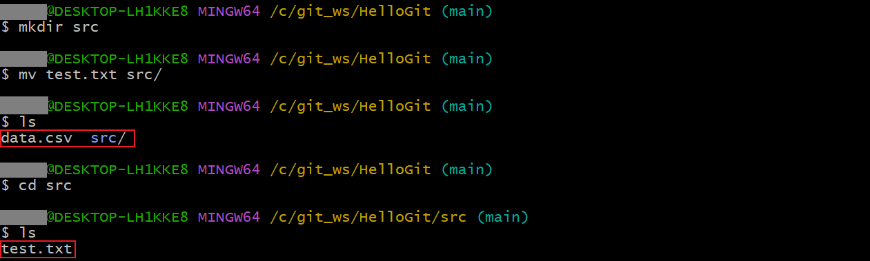 git mv가 아닌 터미널 명령어 mv 사용mkdir src