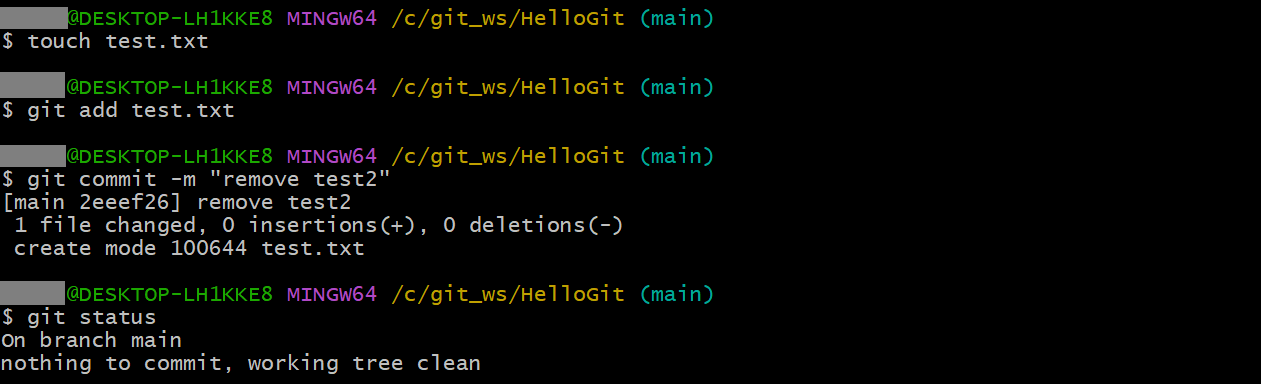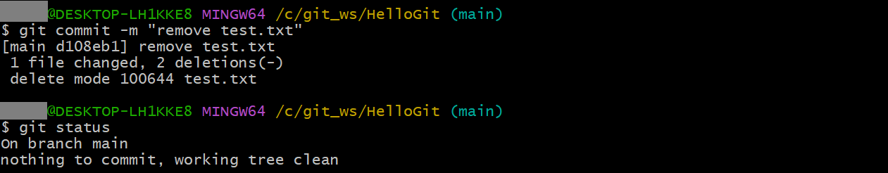 git commit -m "remove test.txt"