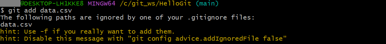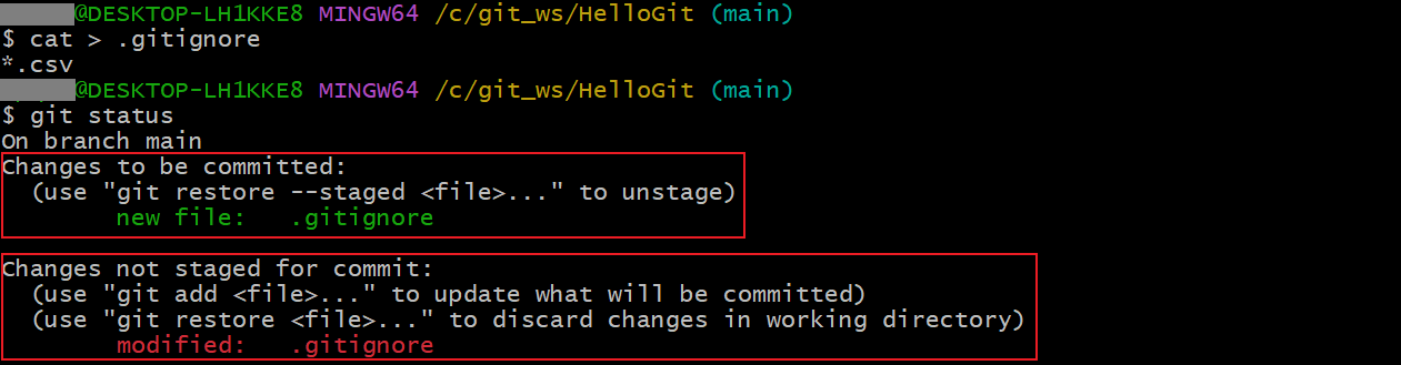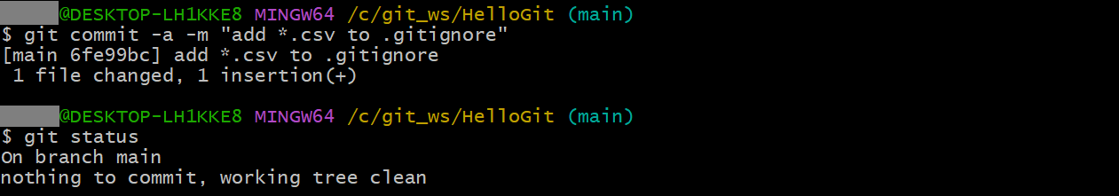 git commit -a -m "add *.csv to .gitignore"