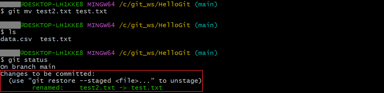 git mv test2.txt test.txt