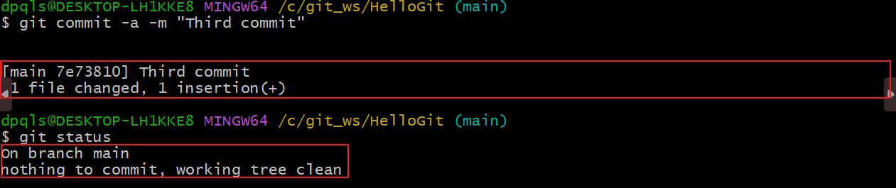 -a 사용 - Staging Area 생략 가능-a 옵션git commit -a -m "third commit"