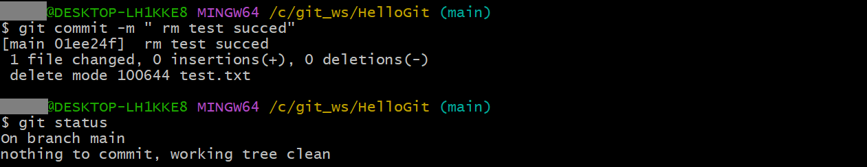 git commit -m "rm test succed"