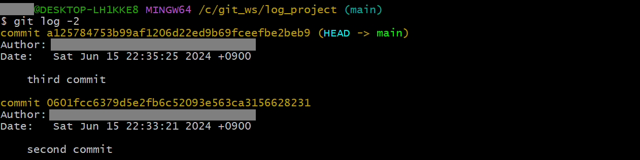 git log -2