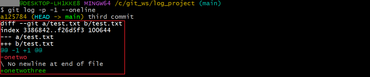 git log -p -1 --oneline