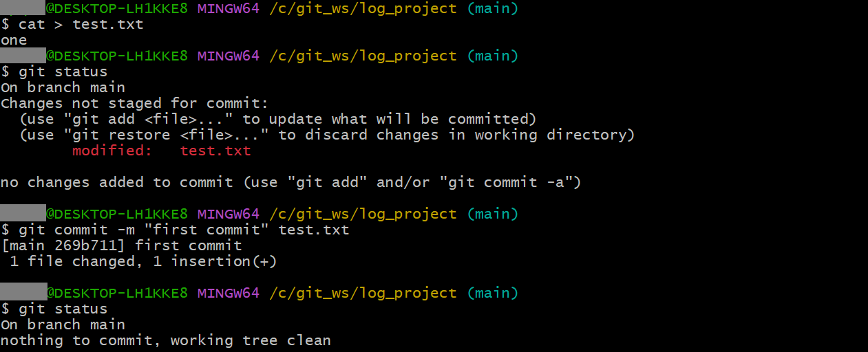 git commit -m "first commit" test.txt