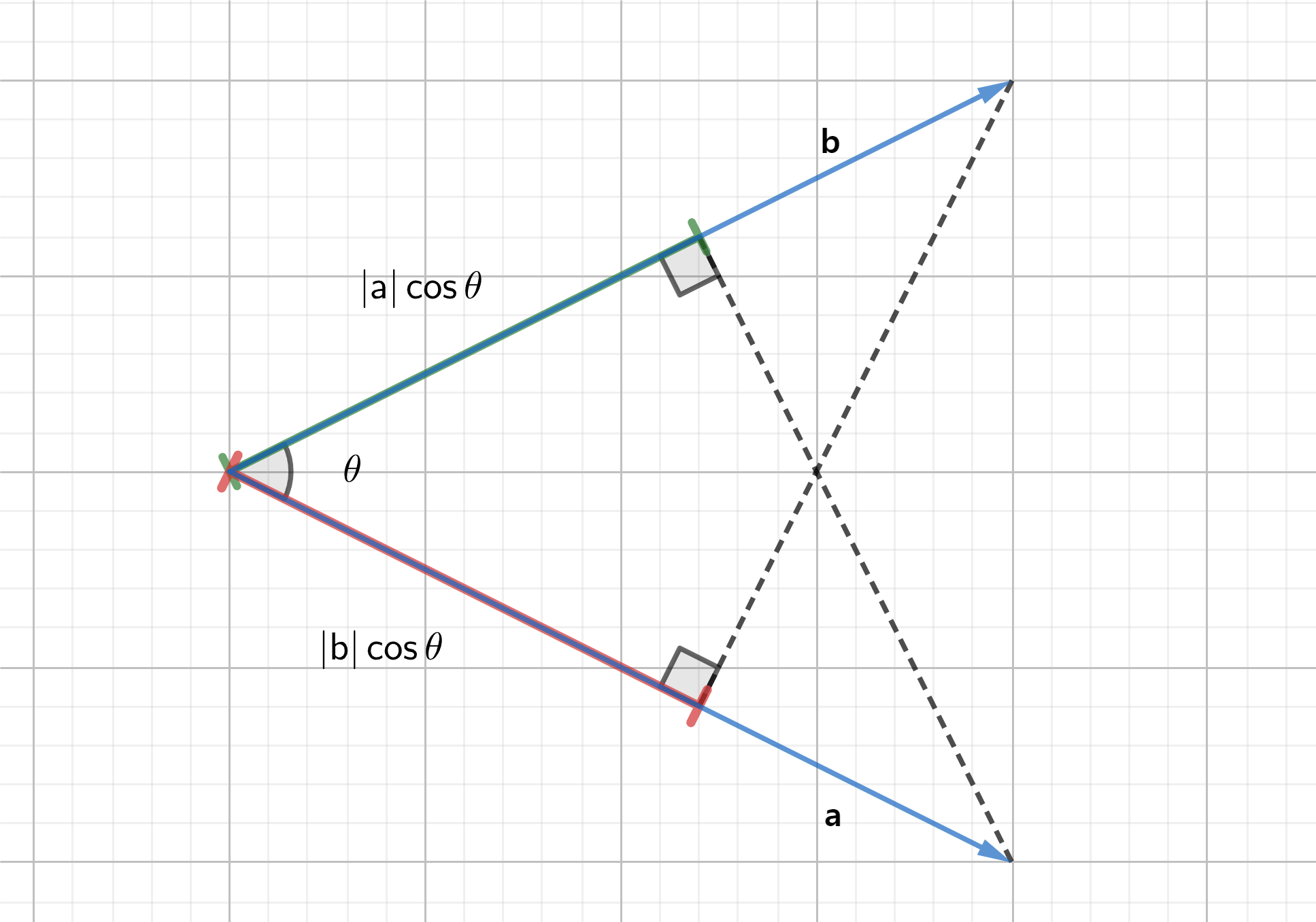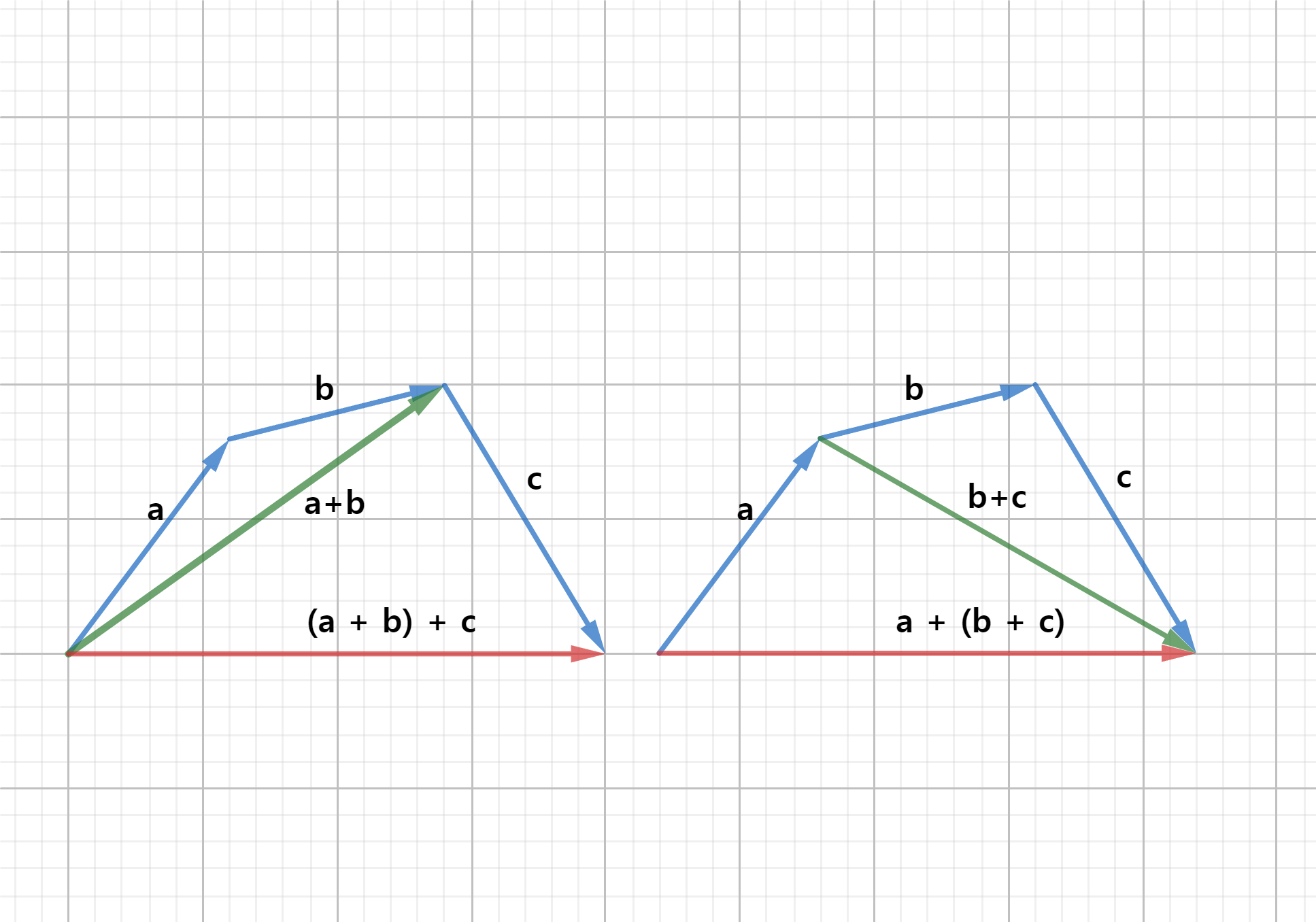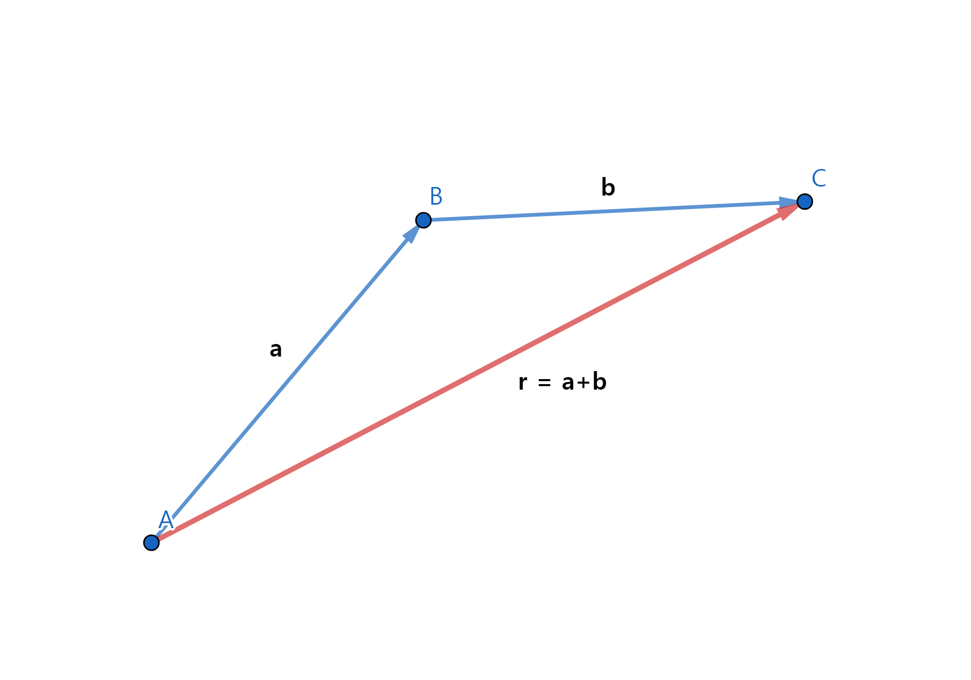 꼬리를 일치 시킨 후, 두 벡터를 인접한 두 변으로 평행사변형을 그렸을 때, 두 벡터의 꼬리에서 시작하는 평행사변형의 대각선이 a와 b의 합벡터에 해당됨