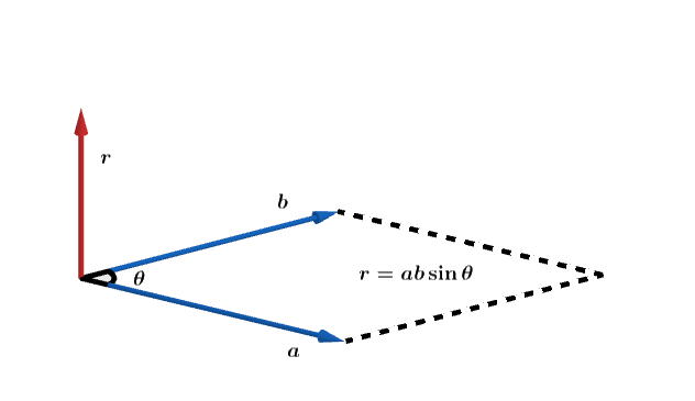 외적이 있음벡터인데, 방향은 두 벡터 a와 b가 이루는 평면에 수직