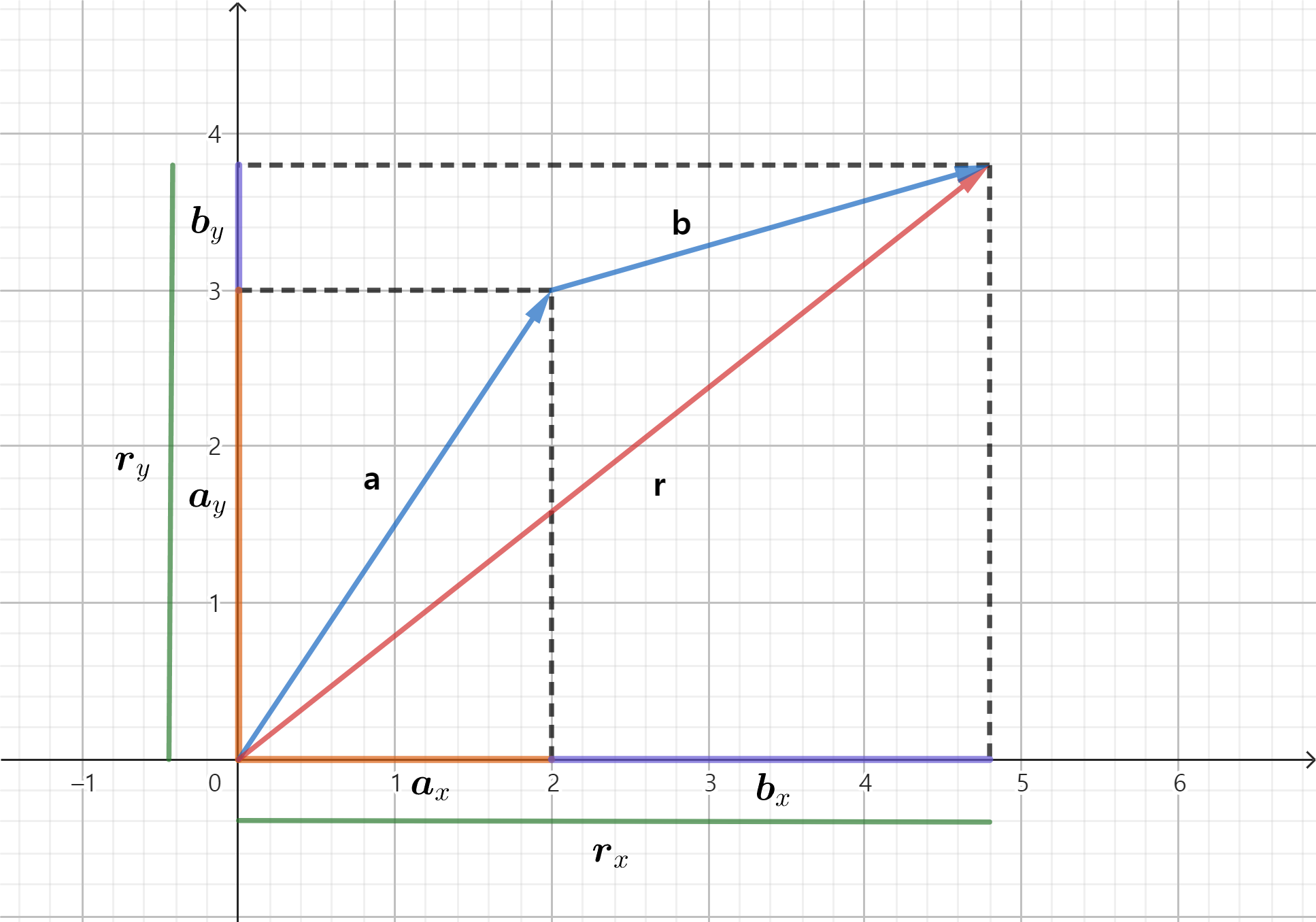 a=(2, 3), b=(2.7, 0.7) 일 경우 r=(4.7, 3.7)