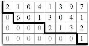 - 한 matrix의 대각선을 기준으로 위쪽에 0이 아닌 값들이 존재하고 그 아래는 모두 0이어서 값이 있는 곳들을 보면 사다리꼴 모양인 matrix