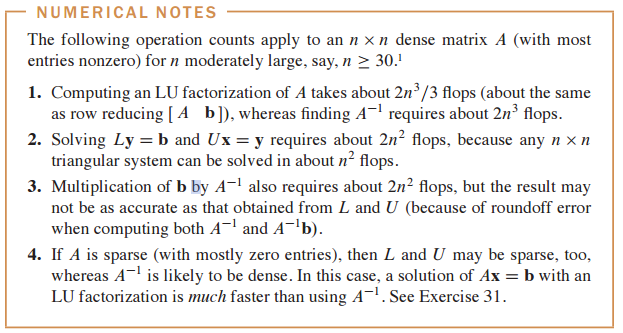 - 행 줄임(row reduction)으로 A를 LU분해하여 방정식을 푸는 것이 효과적