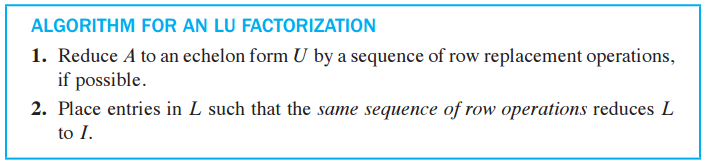 A를 분해해서 U로 변환할 때 row interchange, scaling 없이 replacement만을 이용해서 변환 해야함