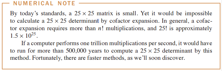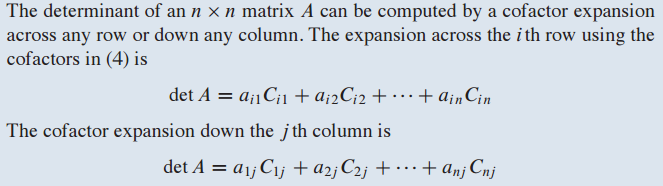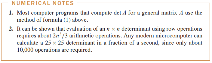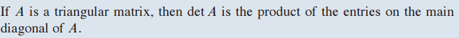 echelon form(행사다리꼴)은 triangular matrix이므로 각각의 diagonal term을 곱하면 det을 구할 수 있음