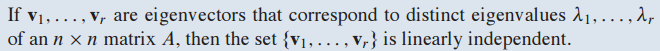 즉, distinct eigenvalue가 주어지고 그에 해당하는 eigenvector set은 무조건 linearly independent set이 됨