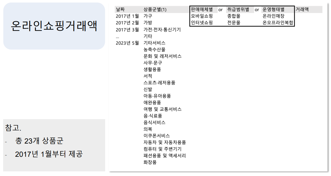 !pip install pandas : 판다스 설치!pip list : 설치완료 확인import pandas as pd : 판다스 불러오기route1 = r'csv파일 위치' : csv 파일 불러오기\U 가 주소에 들어가 유니코드로 인식하는 에러 발생 r 은 Raw 문자열을 의미, 가공되지 않고 문자 그대로 사용하라는 뜻\가 이스케이프 문자이기에 이부분을 무력화 하는 동작df = pd.read_csv(route1, encoding = 'cp949') : utf-8, cp949 : 한글 encoding이 필요한 데이터셋df.info() : 데이터 타입 확인df.columns : 컬럼 확인df.columns[0] : 0번 컬럼 확인df[df.columns[0]].unique() : 0번 컬럼의 데이터 유일 값 확인df['column_name'].unique() : 컬럼명 지정하여 유일값 확인df[df['column_name'] == 'data'] : 값이 data인 테이블 추출