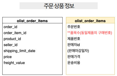 FROM `olist.olist_order_items` AS item -- 주문 상품 정보 테이블