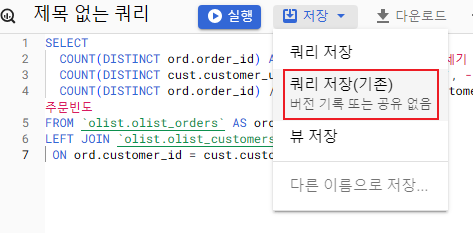 FROM `olist.olist_orders` AS ord -- 주문정보 테이블