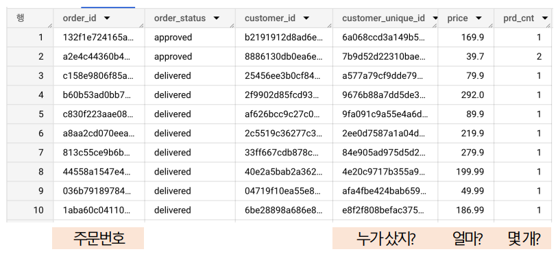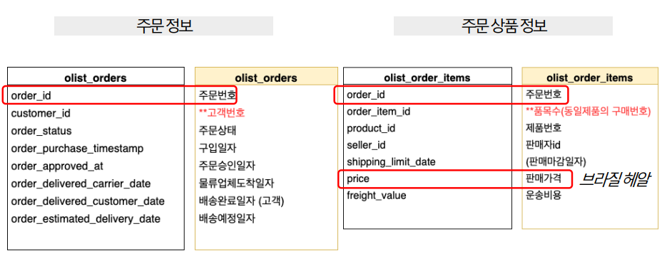 FROM `olist.olist_order_items` AS ord -- 주문정보 테이블