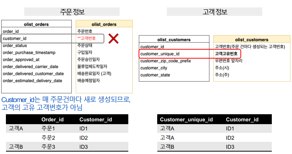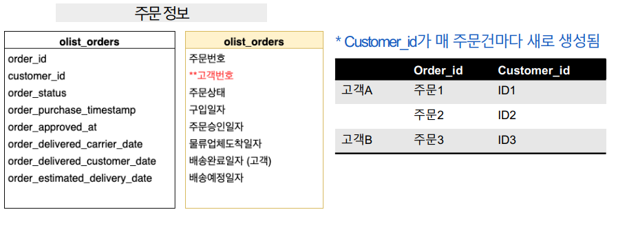 customer_id는 매 주문 건마다 생성! 고객의 고유 고객번호가 아님!