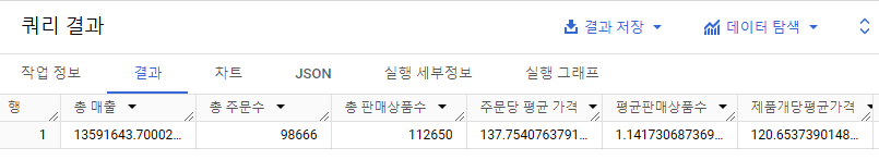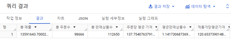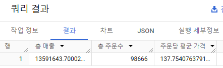 /* 총 매출, 주문 건수 > 주문 1건당 평균 가격 */