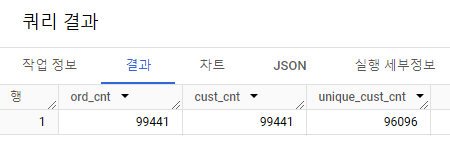 COUNT(DISTINCT cust.customer_unique_id) AS `주문고객수`, -- 고객 고유 id 세기
