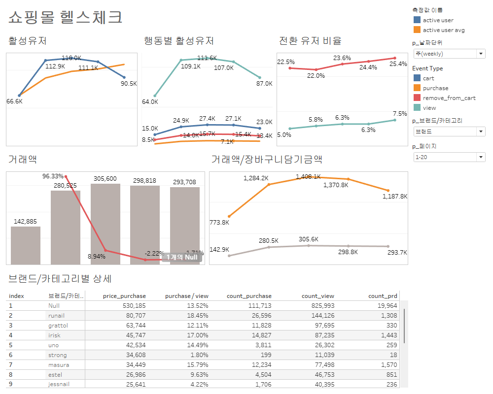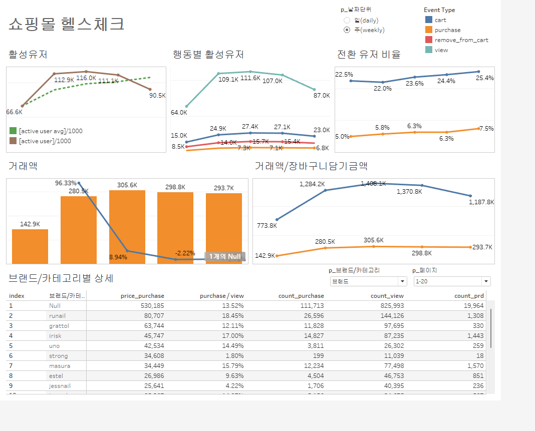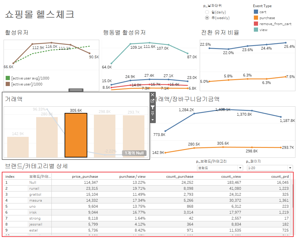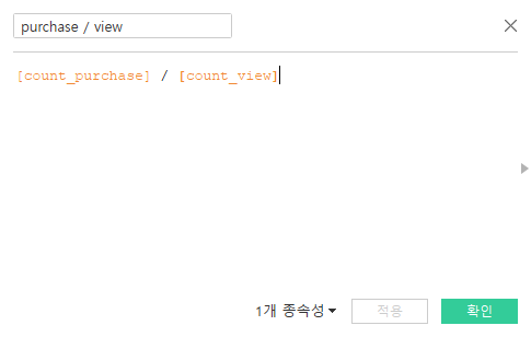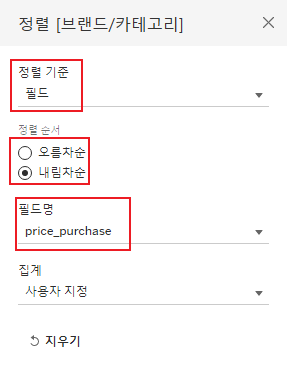 - 정렬 기준 : 필드 / 내림차순 / 필드명 : price_purchase(거래액)