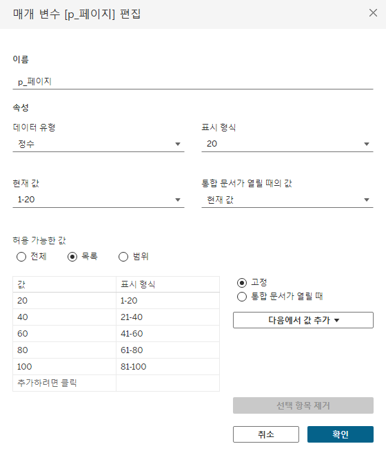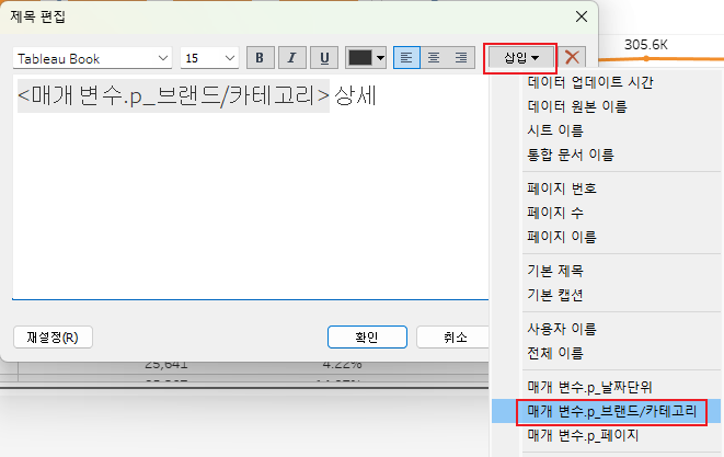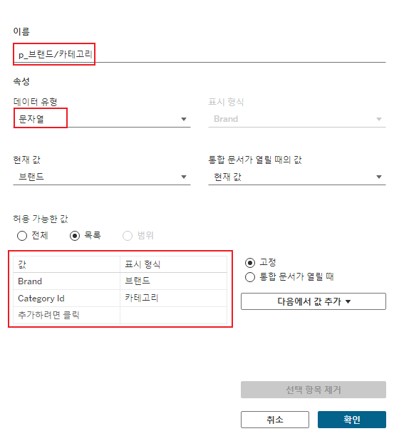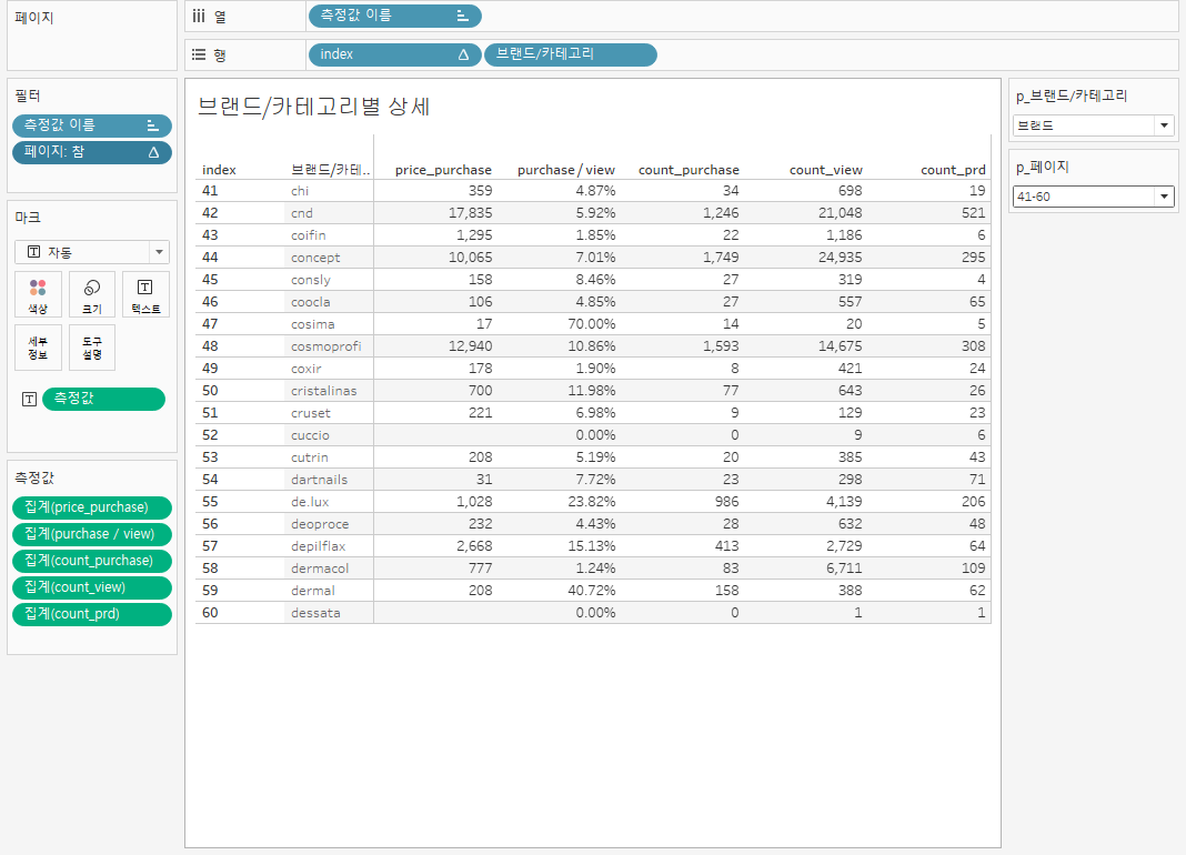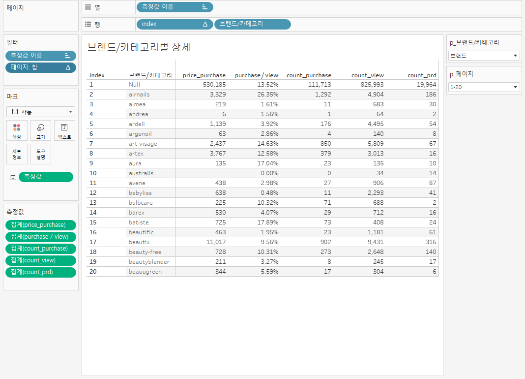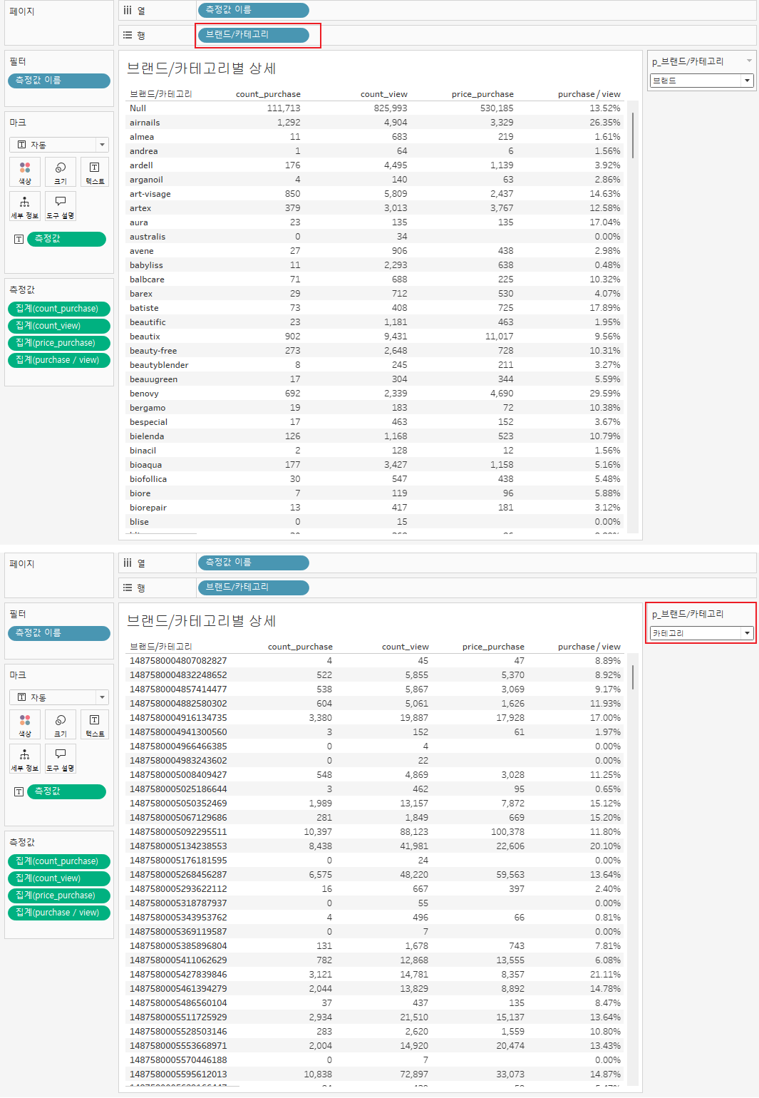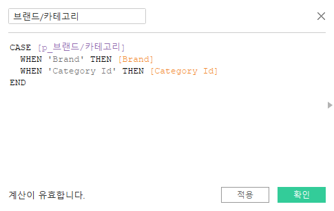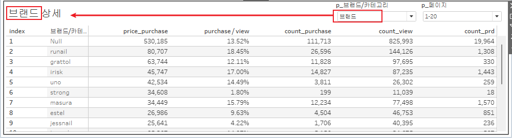 🔆 매개변수를 만들어 행 선반의 Brand를 대체