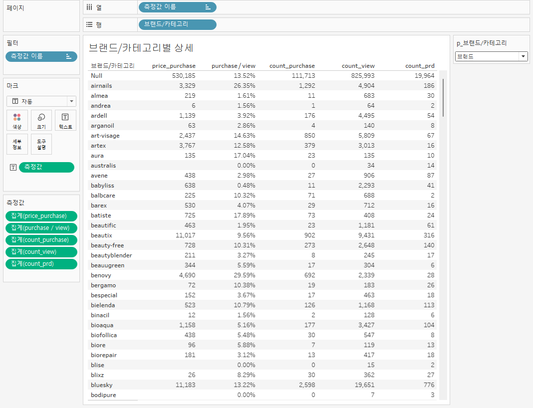 🔆 브랜드별 상품이 몇번 보여지고 구매가 이뤄졌는지 필드 생성