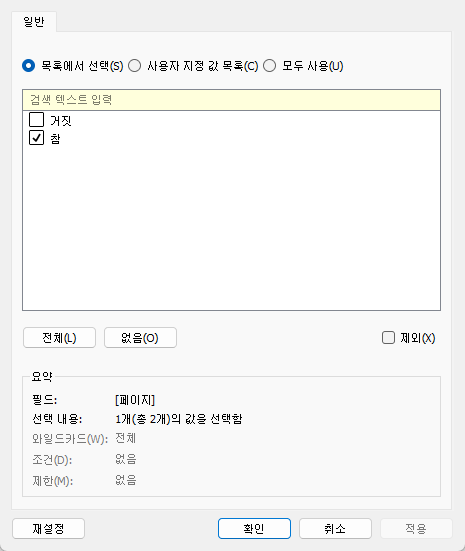 🔆 인덱스 필드 → 불연속성으로 변경 후 행 선반에 배치