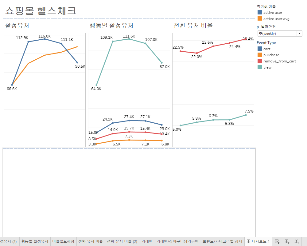 ☁️ 타이틀과 빈페이지 사이에 가로 컨테이너 추가 → 활성유저, 행동별 활성 유저, 전환 유저 비율 시트 추가