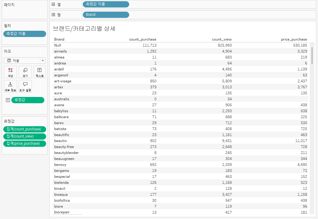 ☁️ 행 선반에 있던 Brand를 대체하고 결과 확인