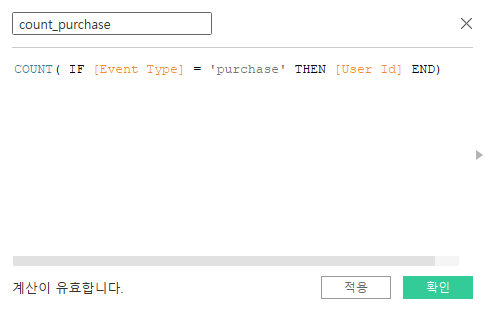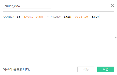 - COUNTD가 아니기 때문에 고유한 ID가 아닌 조회한 ID 횟수를 COUNT!