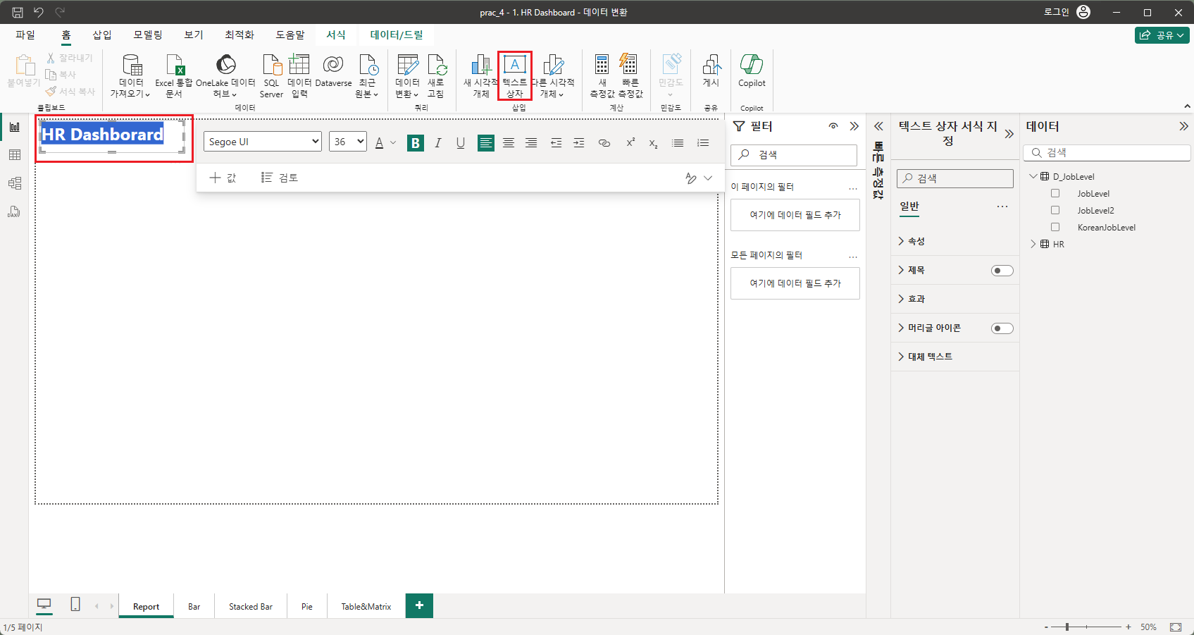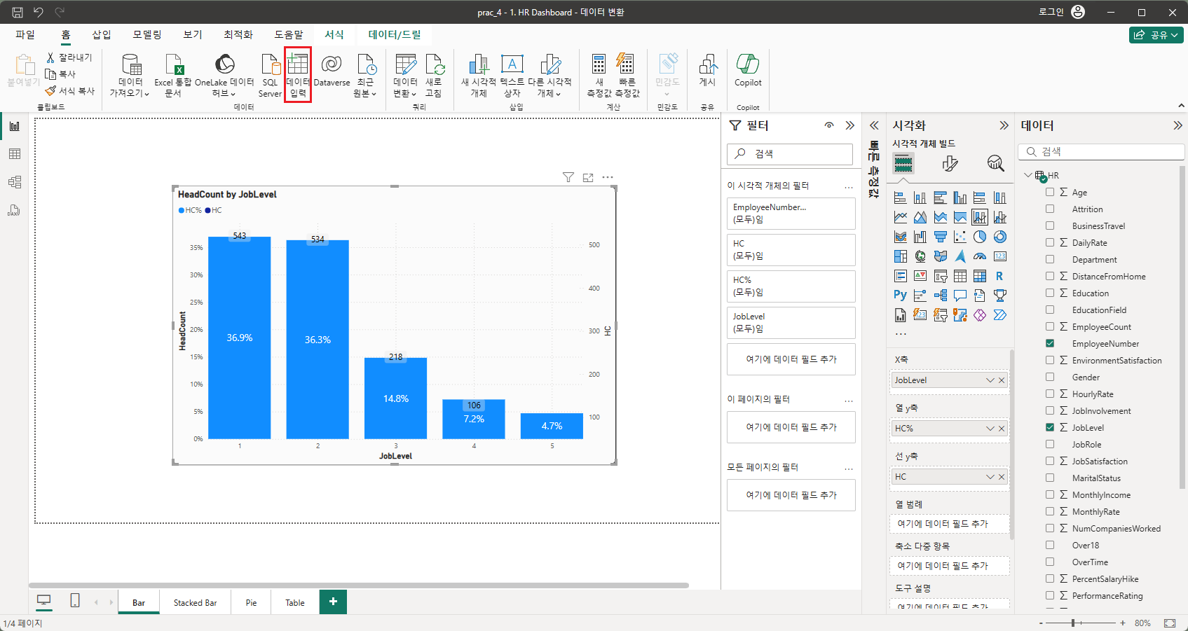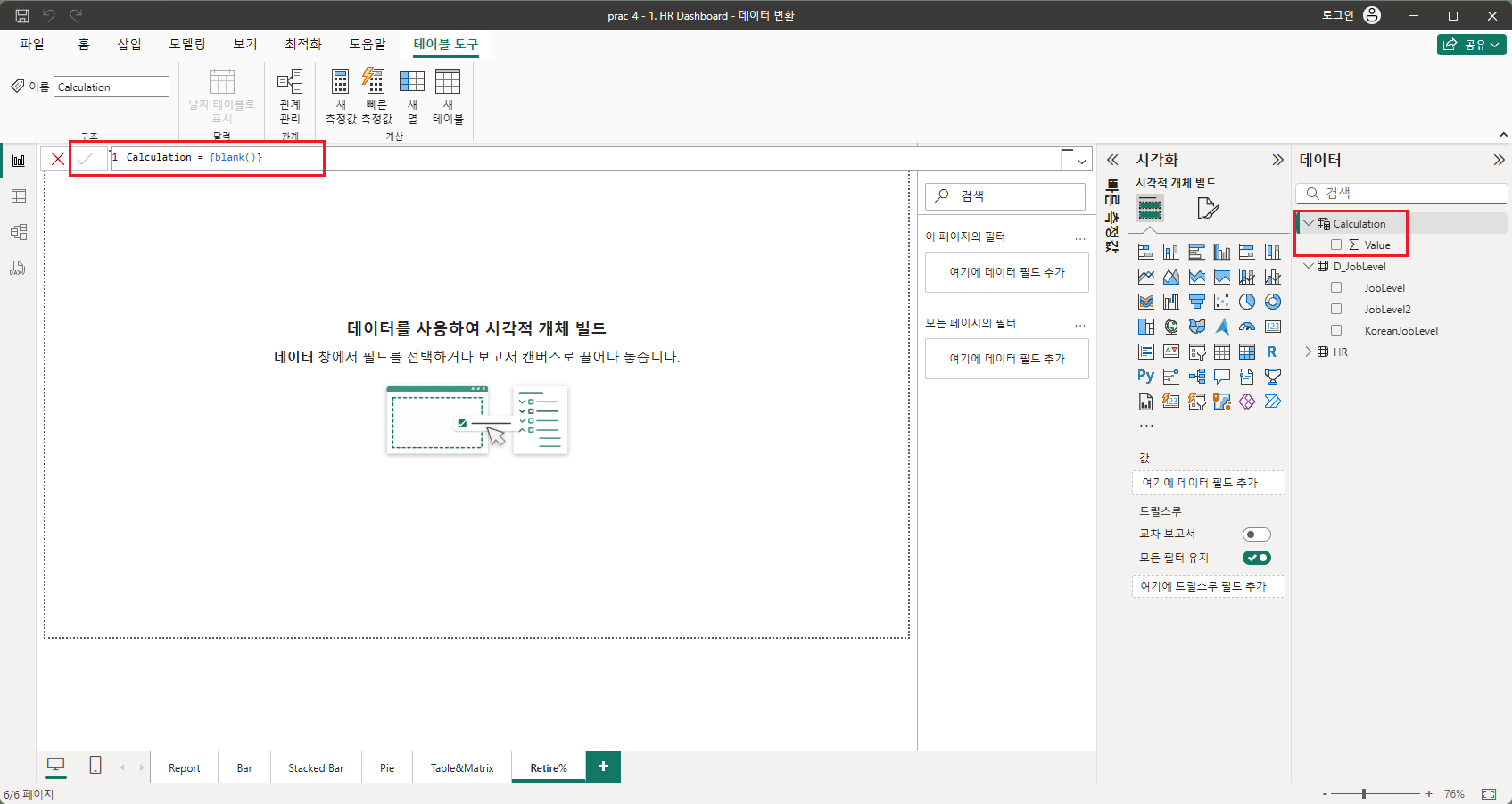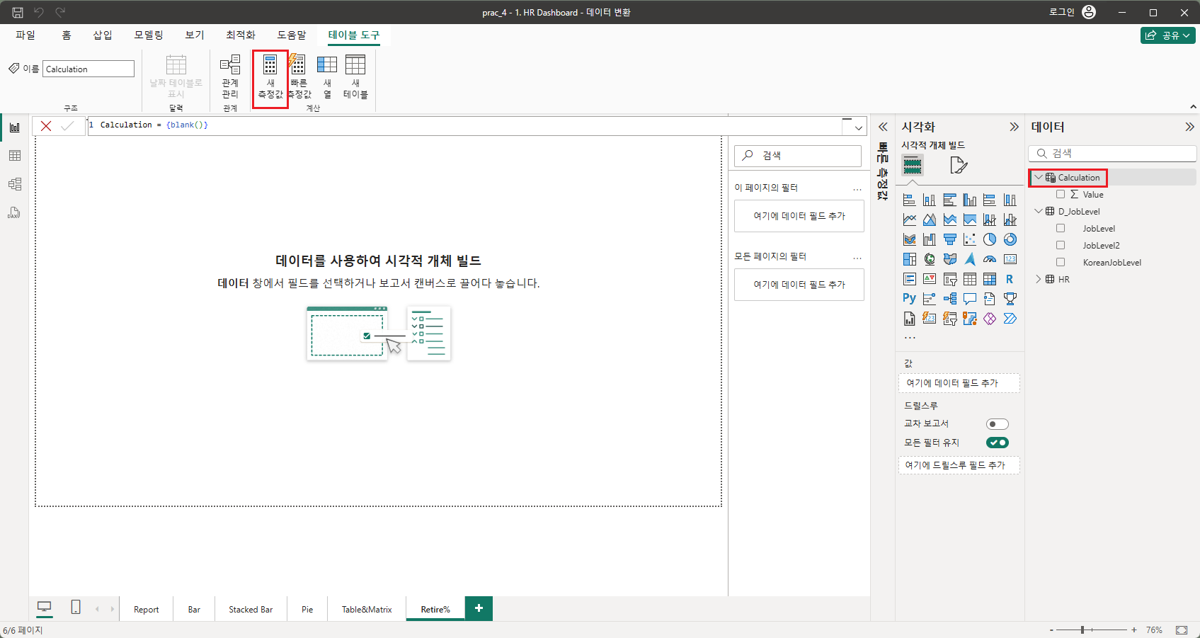 ☁️ 테이블 선택 → 테이블 도구 → 새 측정 값 선택