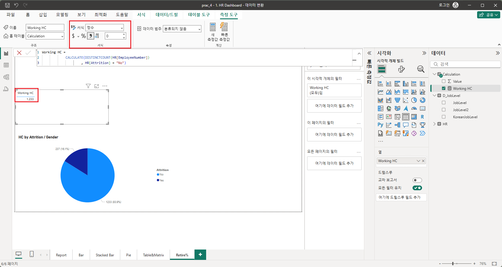 Retired HC = CALCULATE(DISTINCTCOUNT(HR[EmployeeNumber])