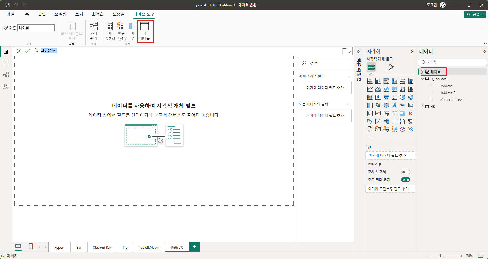 🔆 테이블 도구 탭 → 새 테이블 선택