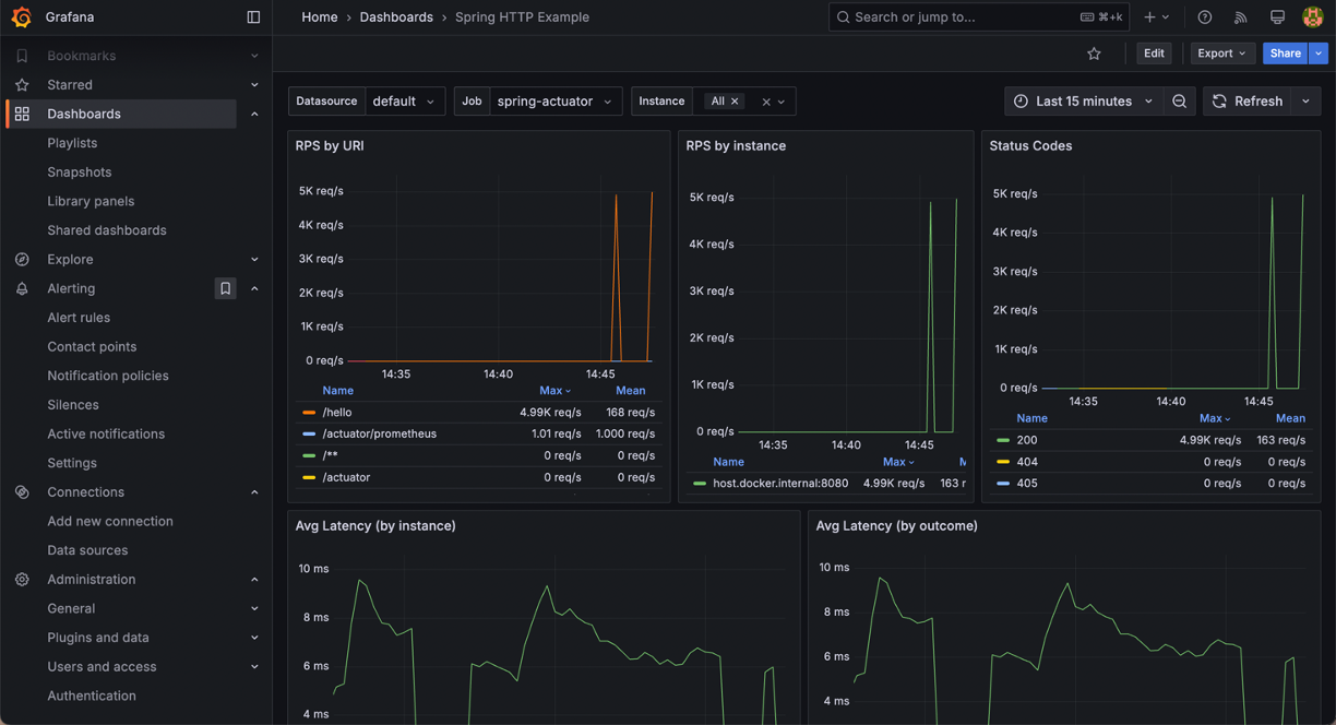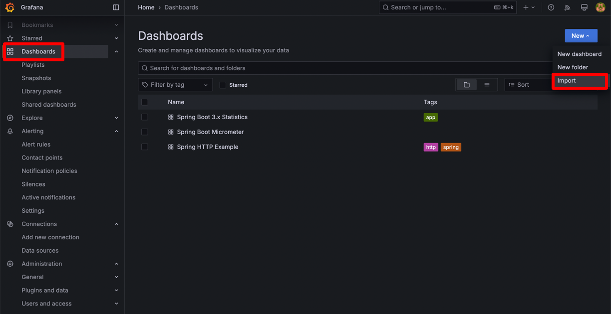 다음으로 Spring HTTP Example 대시보드를 적용해보겠습니다.