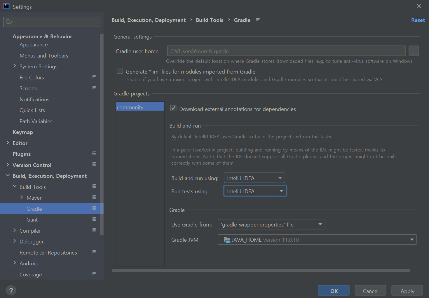 2. Build, Execution, Deployment - Build Tools - Gradle 메뉴로 이동