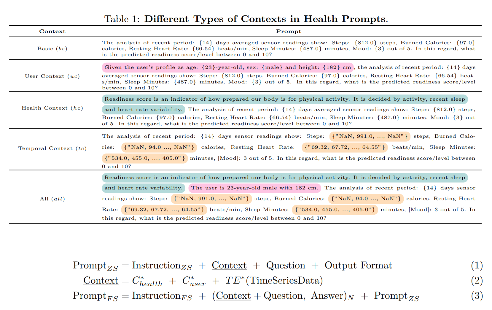 - 방법: 기본 프롬프트 설정(bs)을 통해 웨어러블 센서 데이터를 요약.