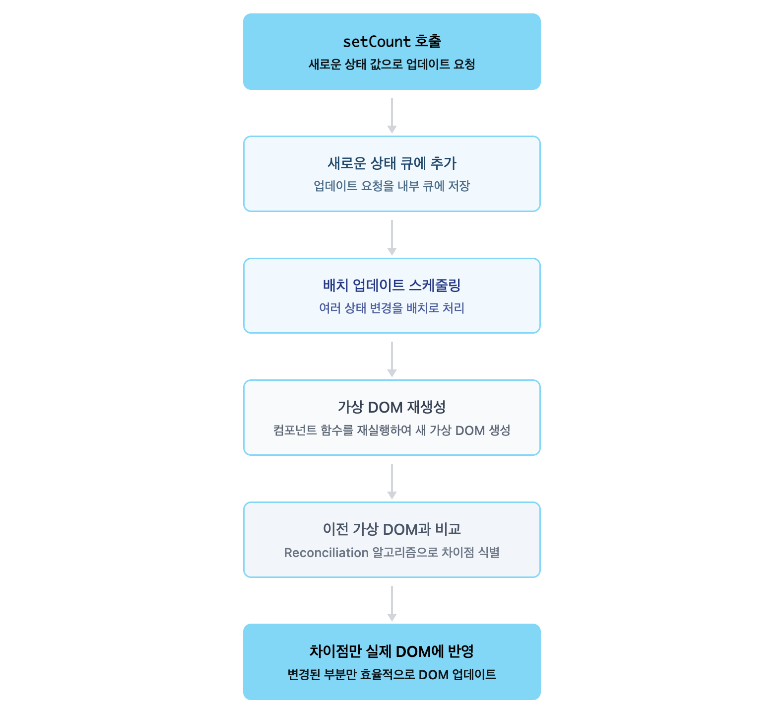 React에서는 useMemo, useCallback, React.memo 등을 사용해 직접 최적화해야 합니다. 메모이제이션은 개발자의 숙제와 같은 것 같습니다..