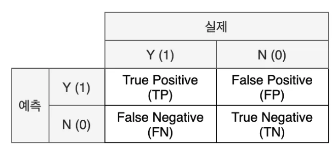 - 예측을 양성으로 했으면 Positive 음성이면 Negative