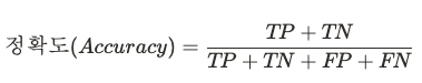 -정확도(Accuracy) : 맞춘 정답을 전체 데이터 개수로 나누는 것