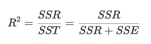 - 전체 모형에서 회귀선으로 설명할 수 있는 정도