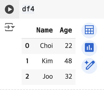 data1 = [['Choi',22],['Kim',48],['Joo',32]]