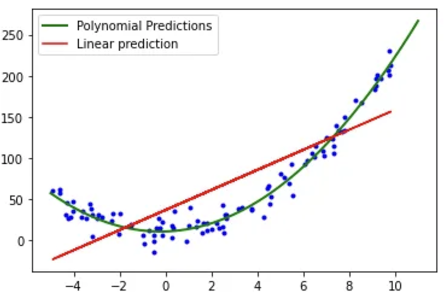 - 다항 회귀(Polynomial Regression) : 비선형 데이터에 사용